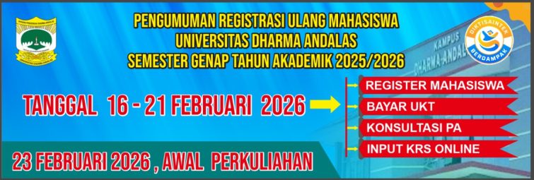 dengan menambah 11 (sebelas) program studi baru jenjang Strata (S1) sesuai SK Mendikbud RI No: 254/E/O/2014 tentang izin perubahan bentuk STIE Dharma Andalas menjadi Universitas Dharma Andalas tanggal 18 Juli 2014, maka jumlah program studi Menjadi 14 program studi dengan 6 program studi kelompok Eksakta dan 8 program studi kelompok Sosial (Diploma 2 prodi dan S1 6 Prodi)